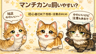 猫の中でも人気の高い「マンチカン」。短い足がとてもかわいくて、猫カフェやSNSでもよく見かけますよね。「マンチカンって飼いやすいの?」「初心者でも大丈夫?」と気になる人も多いと思います。結論から言うと、マンチカンは比較的飼いやすい猫種と言わ...
