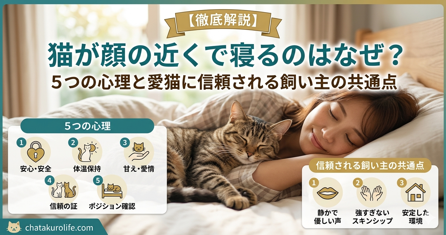 今回は、わが家の元気いっぱいなチャタロウと、慎重派で甘えん坊なクロスケの会話を交えながら、猫が顔の近くで寝る理由とその裏にある驚きの心理を徹底解説します。